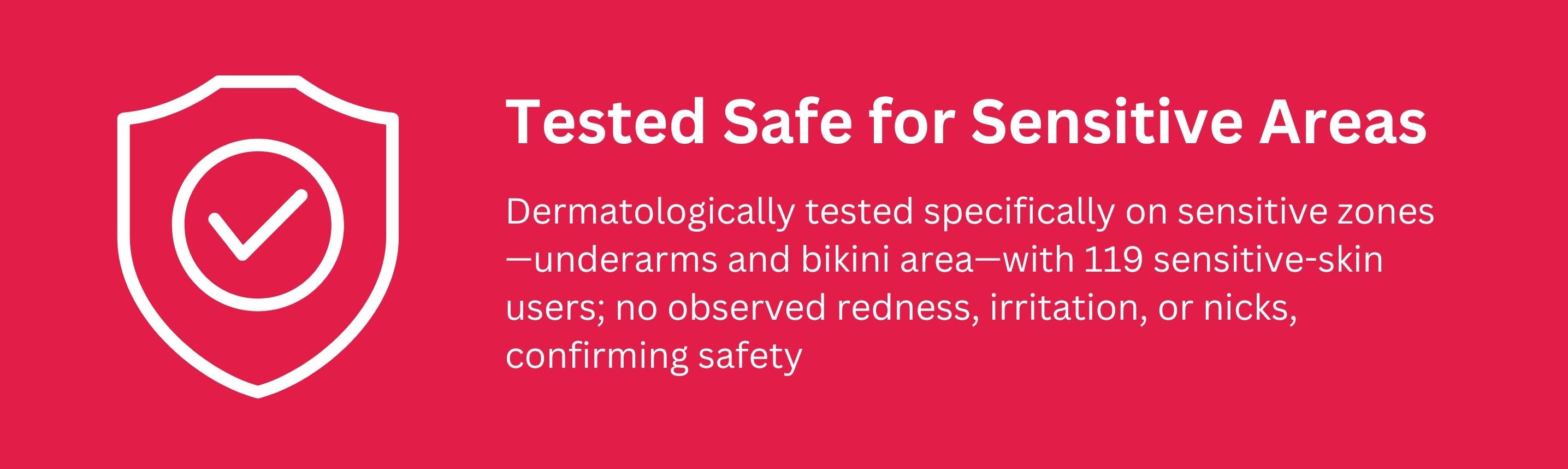 Bikini & Underarm Focused: Compact head, hypoallergenic materials, and optimized blade angle for sensitive zones with 100% NO nicks and redness