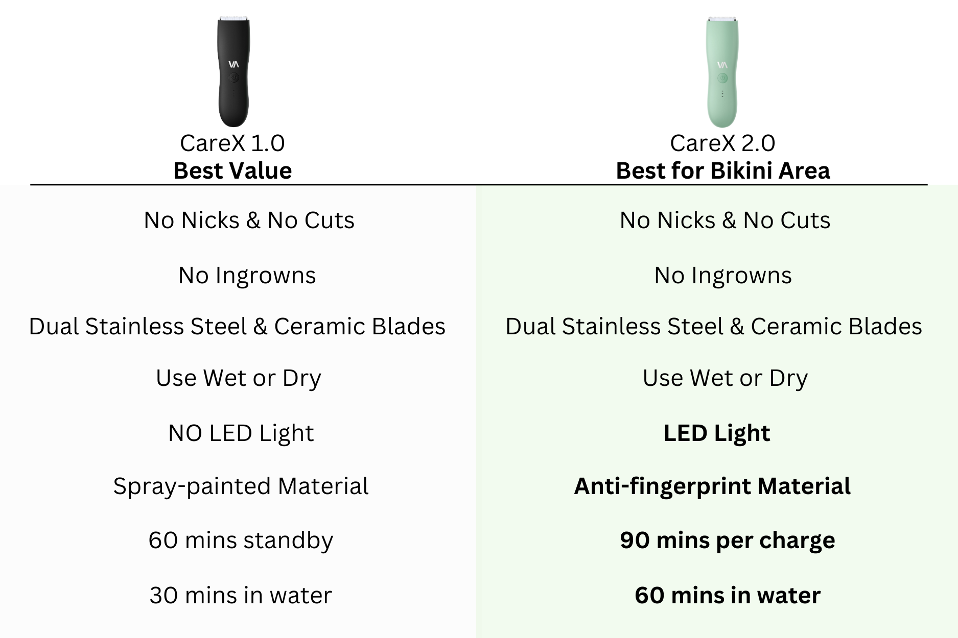 CareX 1.0 has earned its place as a two-year best-seller. While maintaining Vavame's advanced skin-safe technology and design. Sensitive skin tested with no irritation, suitable for full-body hair removal on sensitive skin and intimate area grooming.